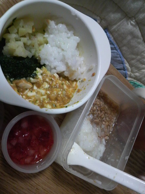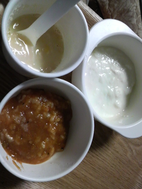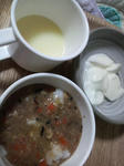 粉々にされた小魚せんべいをコーンスープに入れました☆