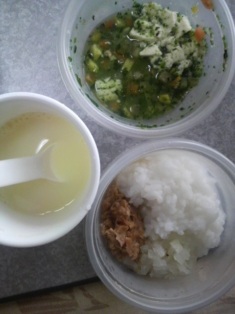 ほうれん草と人参、さつまいものだしスープに豆腐を入れてみました。