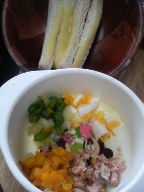 はじめてパンをスティックにして手づかみしてもらおうとしました!この日は手づかみしなかったですが、徐々に出来るといいな~♪