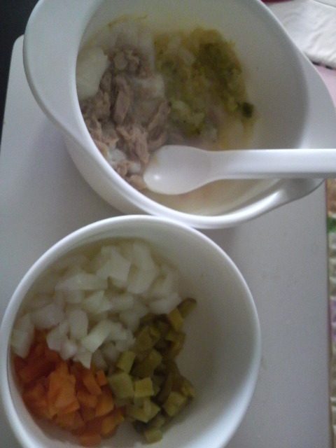 ツナがパサパサになりやすいから水気のあるものと混ぜているけど、やっぱりむせやすい(;_;)