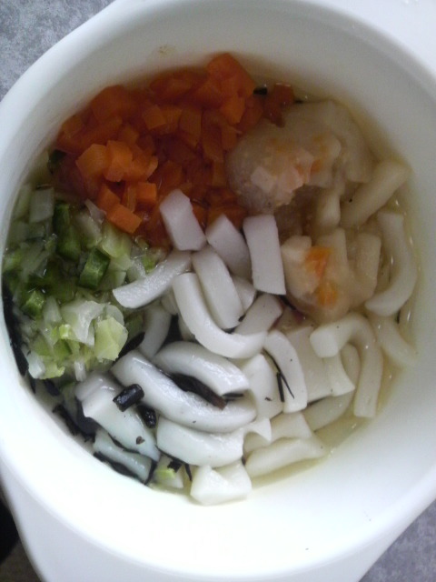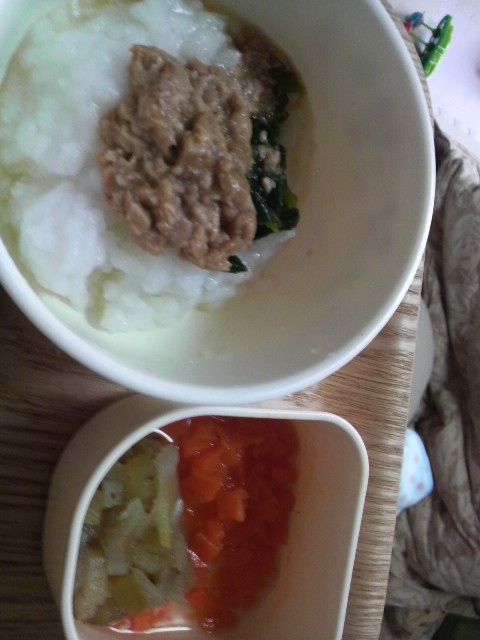 味が濃いのでベビーフードを半分にして、あとの豆腐や野菜などは足しました。