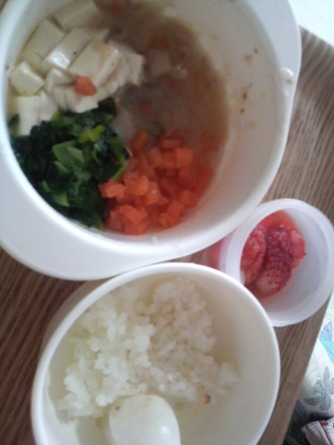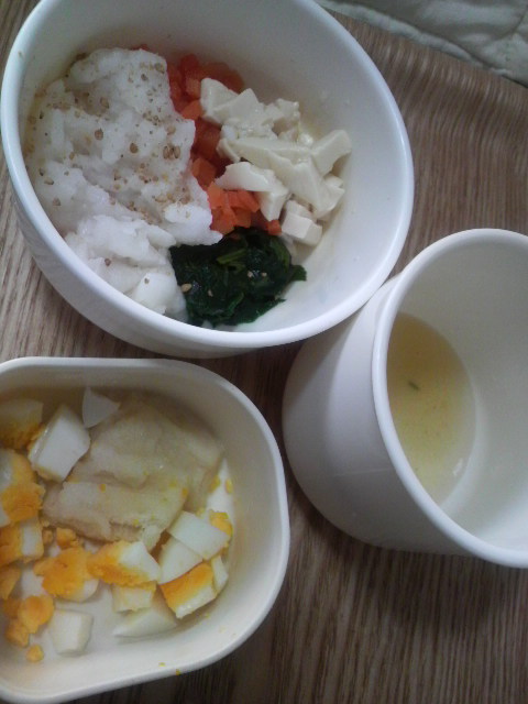 ごはんにお豆腐を混ぜてチャンプル風にしました